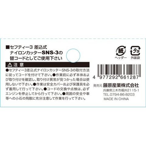 ●セフティ-3差し込み式ナイロンカッターSNS-3の替コードとしてご使用下さい。