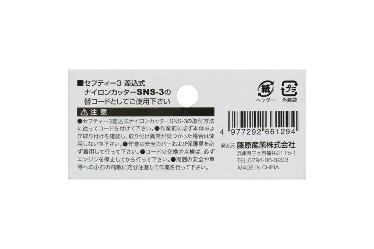 ●セフティ-3差し込み式ナイロンカッターSNS-3の替コードとしてご使用下さい。