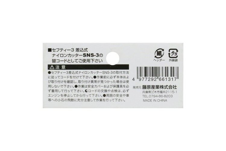 ●セフティ-3差し込み式ナイロンカッターSNS-3の替コードとしてご使用下さい。