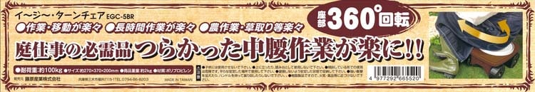 つらかった中腰作業が楽になる、庭仕事の必需品です。作業・移動が楽にできます。長時間の作業も楽々です。農作業・草取り等の作業時に最適です。座部が360度回転します。
