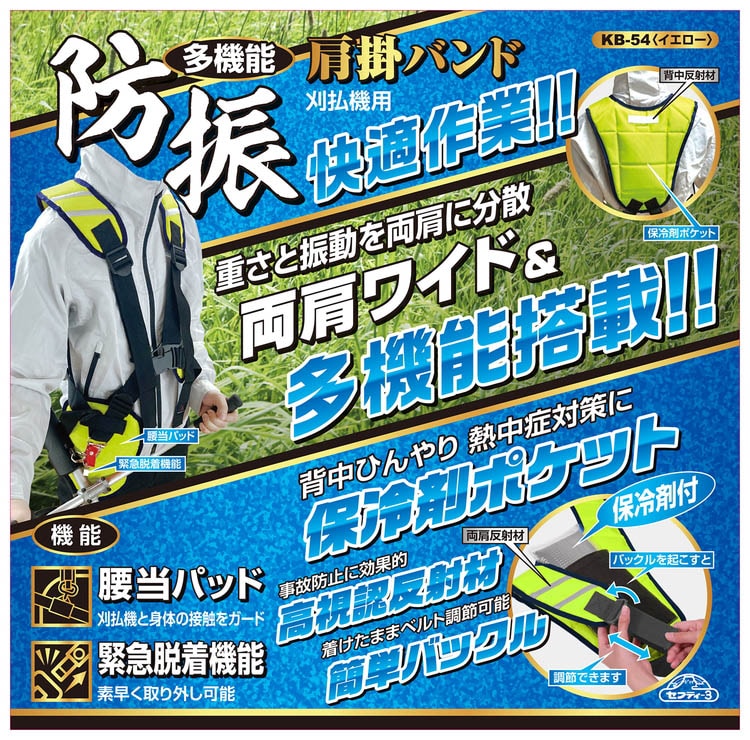 【セフティー3 刈払い機用 草刈り用 多機能防振肩掛けバンド KB-54 黄の商品詳細】