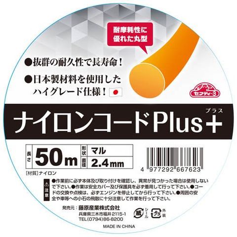 セフティー3 草刈り機用 ナイロンコードPLUS 丸型 2.4mm×50m 日本製 (1個)