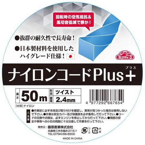 セフティー3 草刈り機用 ナイロンコードPLUS ツイスト型 2.4mm×50m 日本製 (1個)
