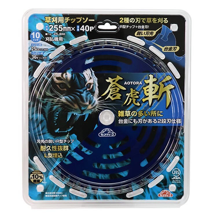 藤原産業 セフティ-3 草刈チップソー 蒼虎・斬 255×40P JIS (1枚)