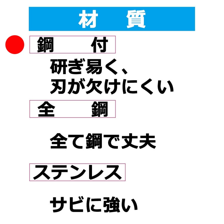 ●刃研ぎしやすく切れ味抜群、鋼付刃で切れ味抜群です。