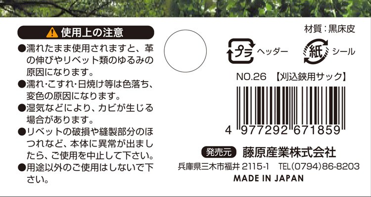 【千吉 ガーデンサック 刈込鋏用 NO.26の商品詳細】