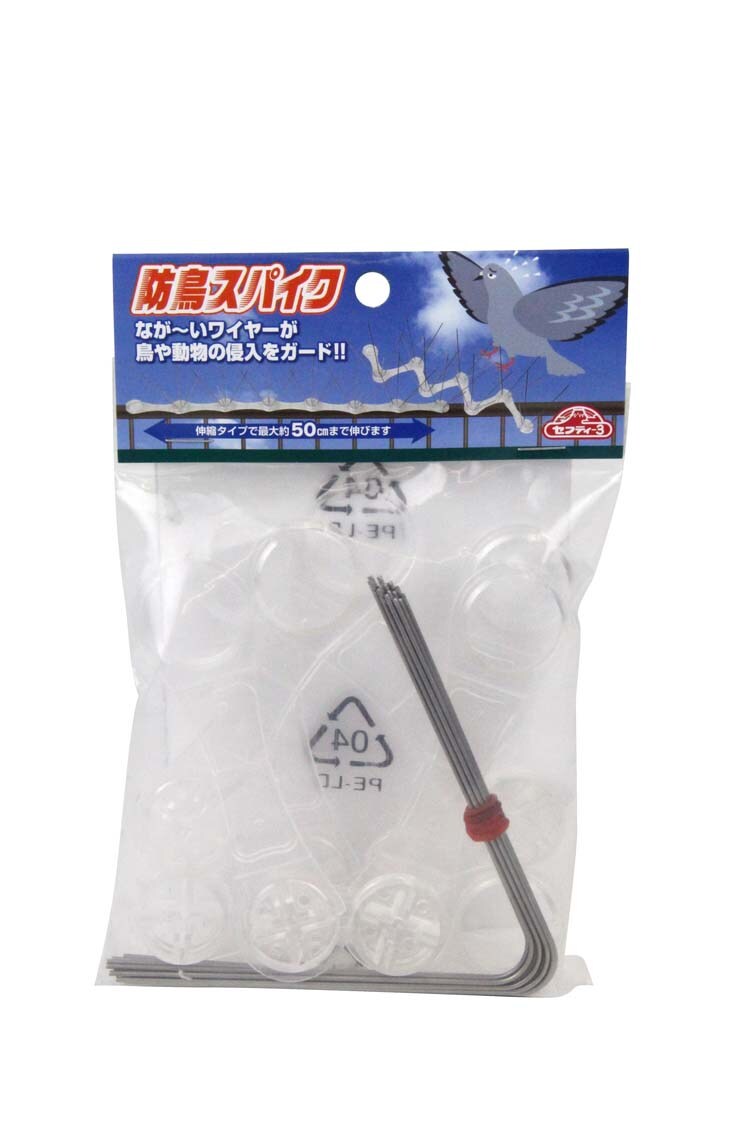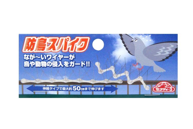 長いトゲが鳥や動物の侵入をガードします。動物の通り道、鳥が止まりやすいベランダの手すり等に設置すれば追い払えます。伸縮タイプで最大約50cm(直線)まで伸びます。何個も継ぎ足し可能な為、長距離の設置も可能です。