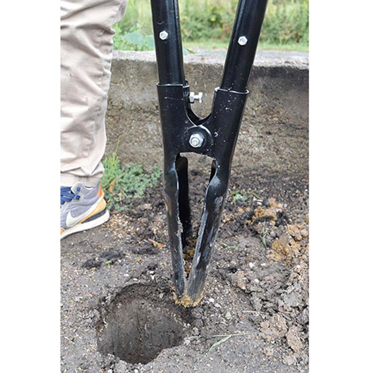 ●地面に突き刺し、ハンドルを開閉し、土を取り出します。