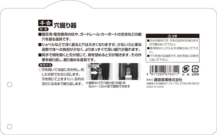 藤原産業 千吉 穴掘り器 1200mm (1個入)