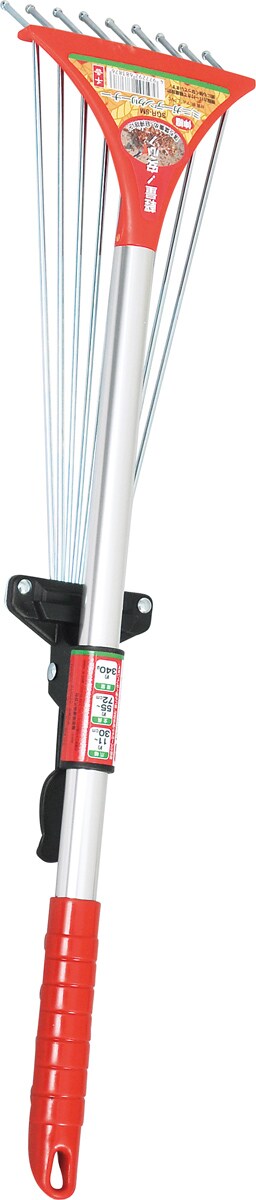 | ・全長:約550mm~720mm(伸縮式) ・爪幅:約110mm~300mm ・重量:約340g ・9本爪 ・材質:カバー:PVC。パイプ部:アルミ。爪部:バネ鋼 |