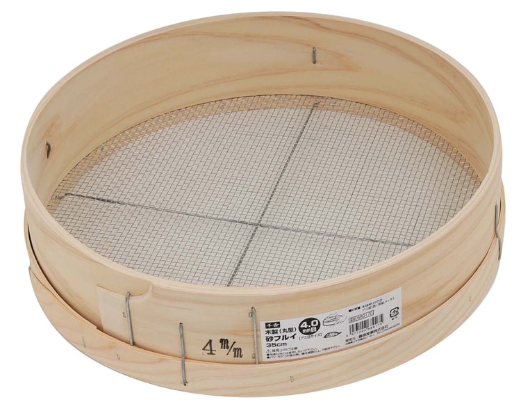 【千吉 木製 砂フルイ 丸型 35cm 4.0mmの商品詳細】