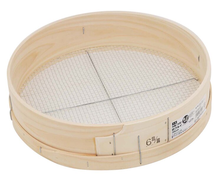 【千吉 木製 砂フルイ 丸型 35cm 6.0mmの商品詳細】
