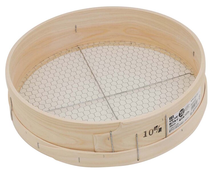 千吉 木製 砂フルイ 丸型 35cm 10.0mm 亀甲目 (1個)