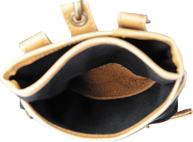 ●鋏収納ポケットの底には、革を敷いているので、刃物を収納していても破損しにくいです。
