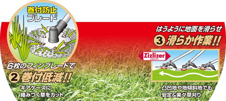 ●6枚のフィンブレードが草の巻付・カラミを低減します。