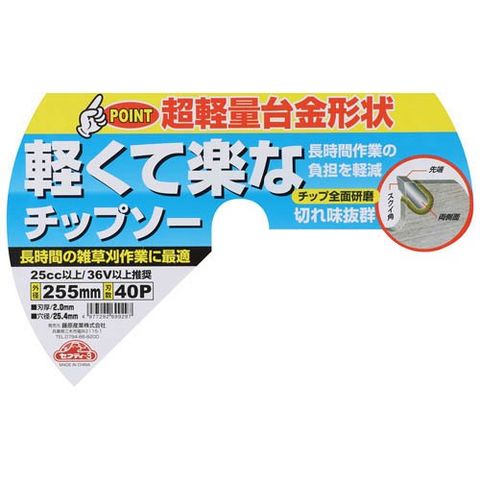 【セフティー3 刈払機用 軽くて楽なチップソー 255mm×40Pの商品詳細】