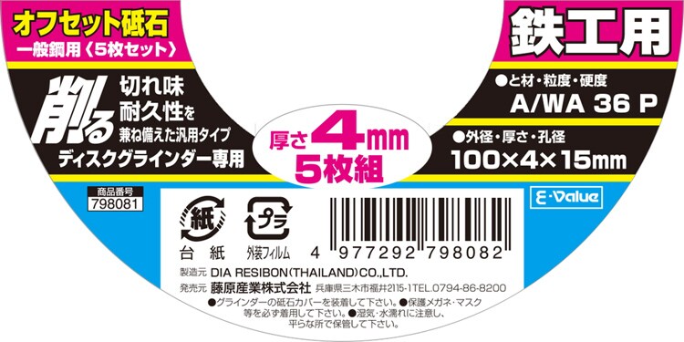 【E-Value オフセット砥石 5枚組 100mm*4mmの商品詳細】