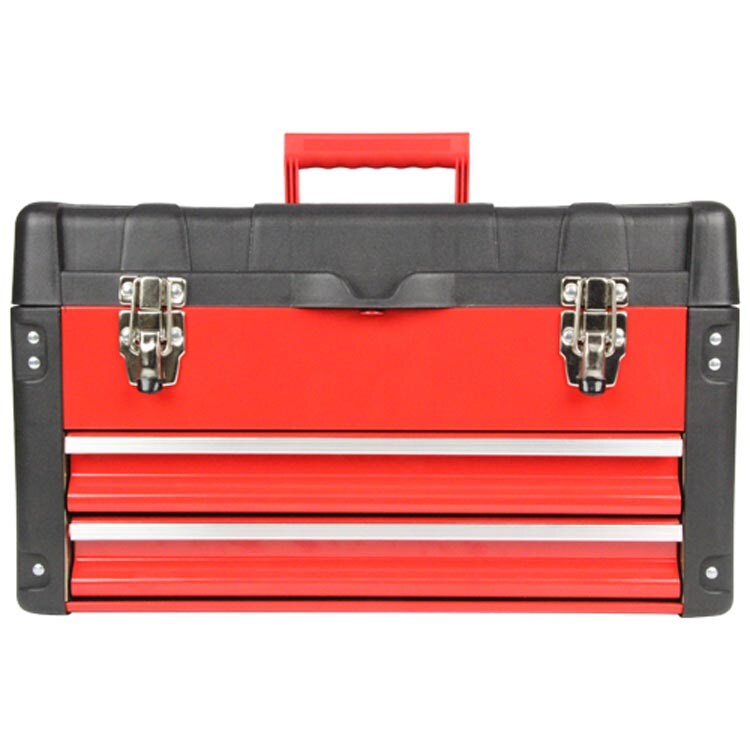 ベアリングレール採用で、軽い力で引出しの開閉がスムーズにできる工具箱です。トップカバーを閉じると引出しが開かない安全機構付。小物収納に便利で、収納物の持ち運びがラクなインナートレー付。