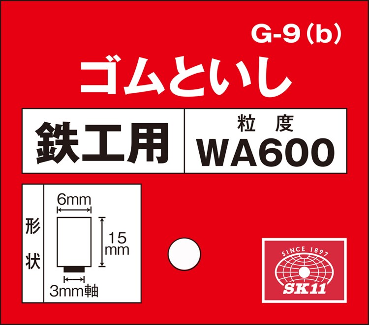 【SK11 軸付ゴム砥石 #600 G-9(b) 6*15の商品詳細】