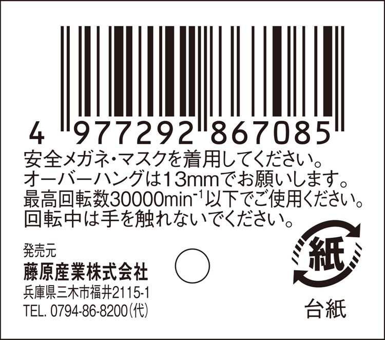 ・最高回転数30000min-1以下でご使用ください。