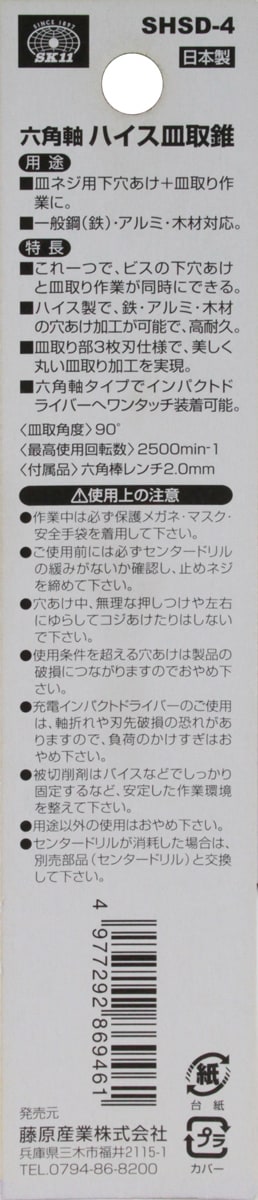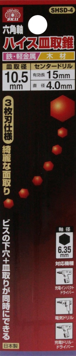 SK11 六角軸 ハイス皿取錐 SHSD-4 4*10.5mm (1本)