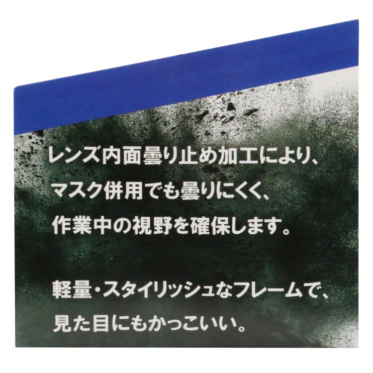 | ・レンズ:ハードコート ・曇り止めレンズ、紫外線カット ・材質:ポリカーボネート、フレーム・テンプル:プラスチック |