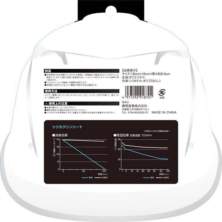 ●シリカクリンの吸湿・消臭効果でヘルメット内の嫌なムレやニオイを即効でさらに強力に取り除きます。