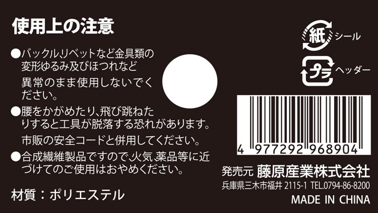 ・腰をかがめたり、飛び跳ねたりすると工具が脱落する恐れがあります。市販の安全コードと併用して下さい。