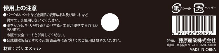 ・バックル、リベットなど金具類の変形、ゆるみ及びほつれなど異常のまま使用しないで下さい。