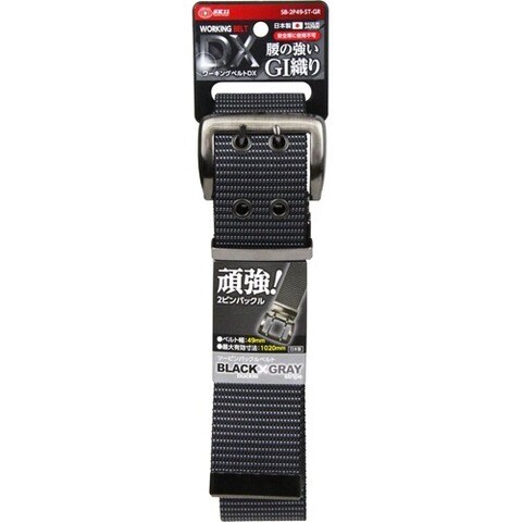 | ・ベルト幅:49mm ・最大有効寸法:1020mm ・バックル色:ブラック ・ベルト色:ブラック*グレー(ストライプ) |