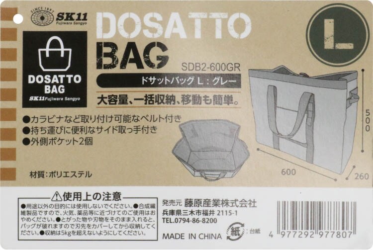 SK11 ドサットバッグL 収納バッグ グレー SDB2-600GR (1個)