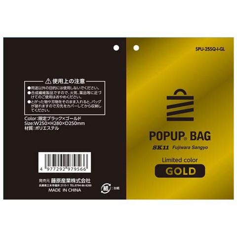 【企画品】SK11 ポップアップバッグSQ ブラック×ゴールド SPU-25SQ-I-GL (1個)