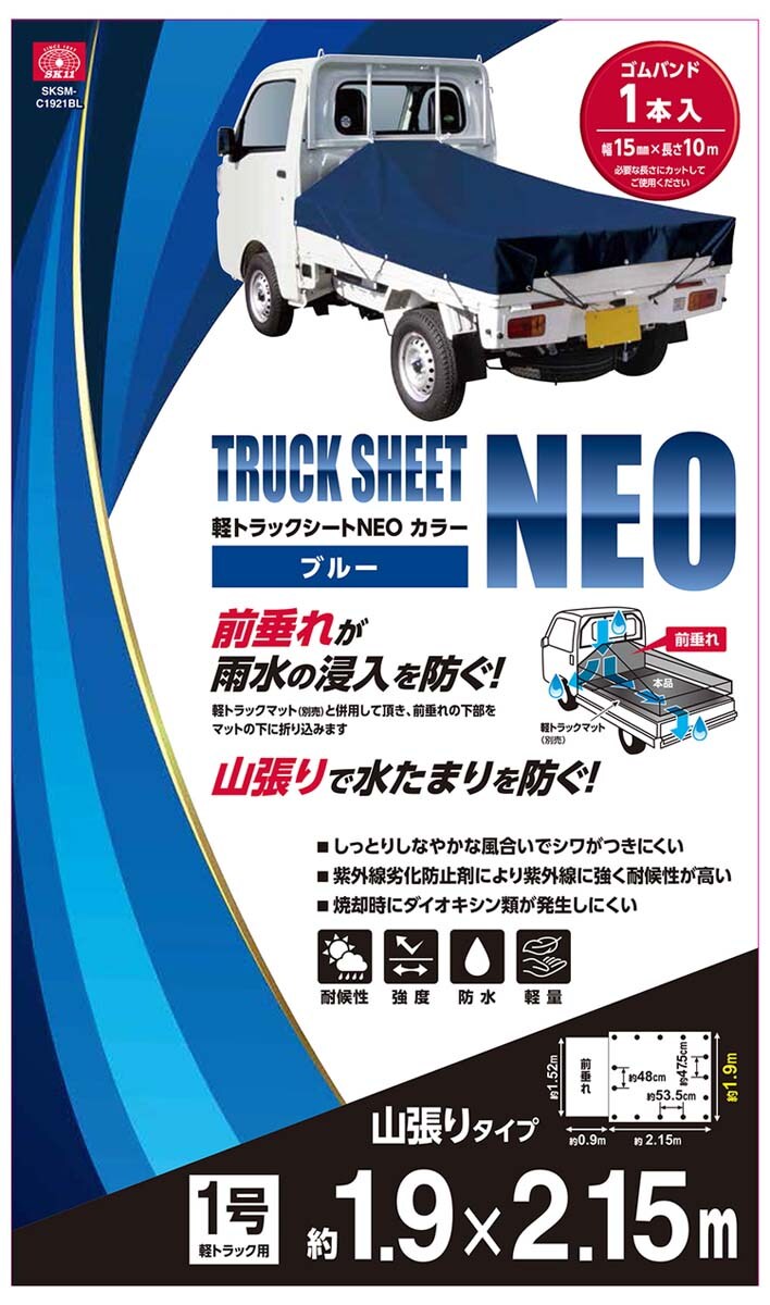 【藤原産業 SK11 軽トラックシートNEO ブルー 1.9m*2.15m 前垂れ付の商品詳細】