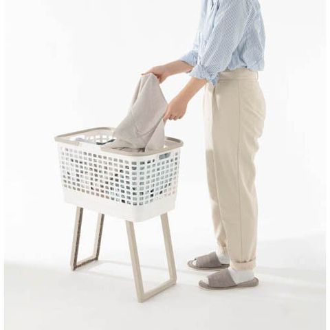 ●収納式スタンドで、高さがアップ!脚付き折りたたみランドリーバスケット。