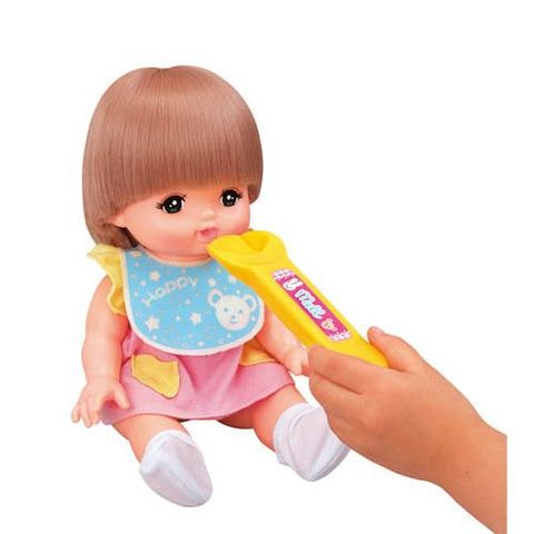 ●本体にスプーンを差し引き抜くと食べ物が乗ったように見え、メルちゃんの口に近づけると・・・パクッ!