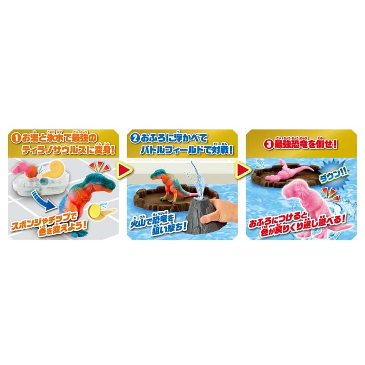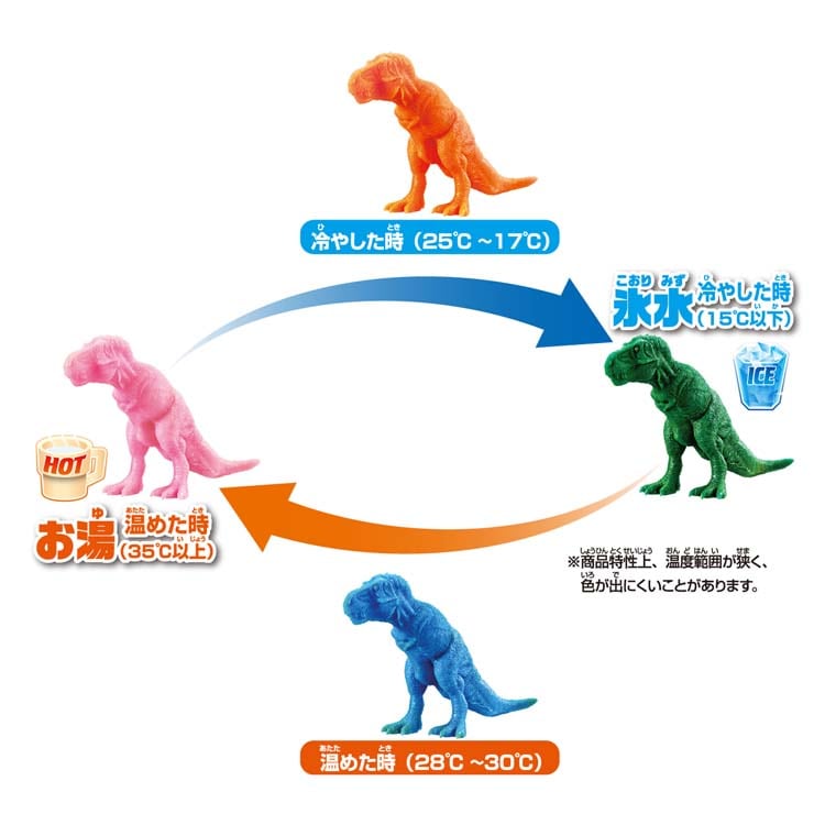 ●ティラノサウルスはお湯と氷水で4色に色が変わり、何度でも繰り返し遊ぶことができます。