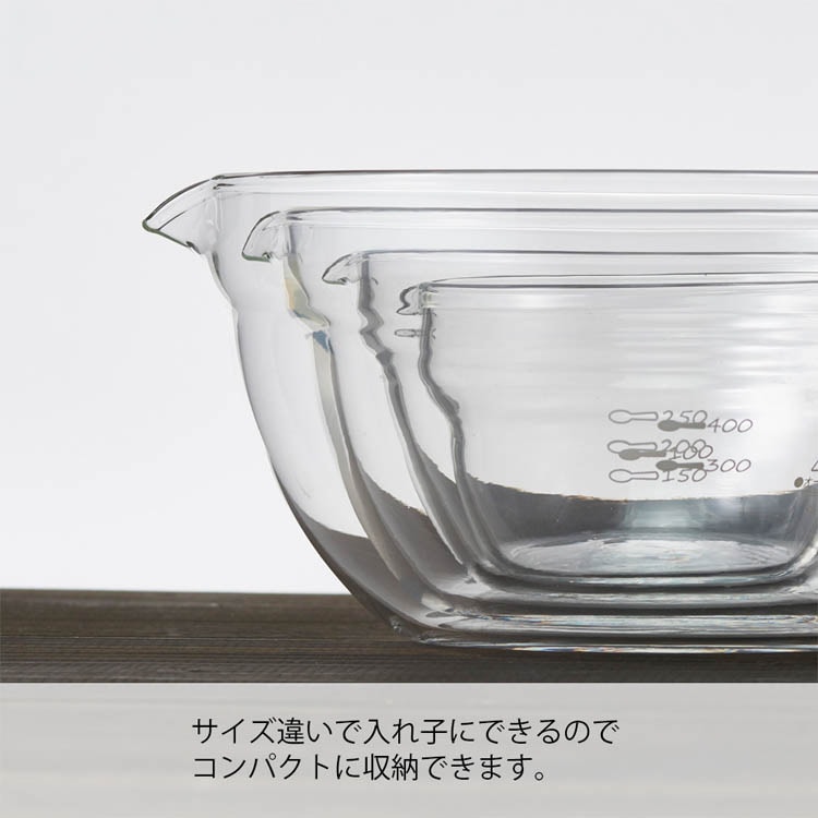 | サイズ:200ml/W113×D105×H60mm、400ml/W137×D131×H70mm 実用容量:200ml、400ml 材質:耐熱ガラス 原産国:日本 |
