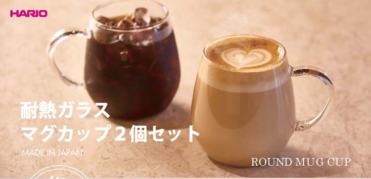 ハリオ 耐熱ガラス ラウンドマグ RDM-1824 (2個入)