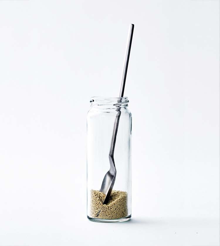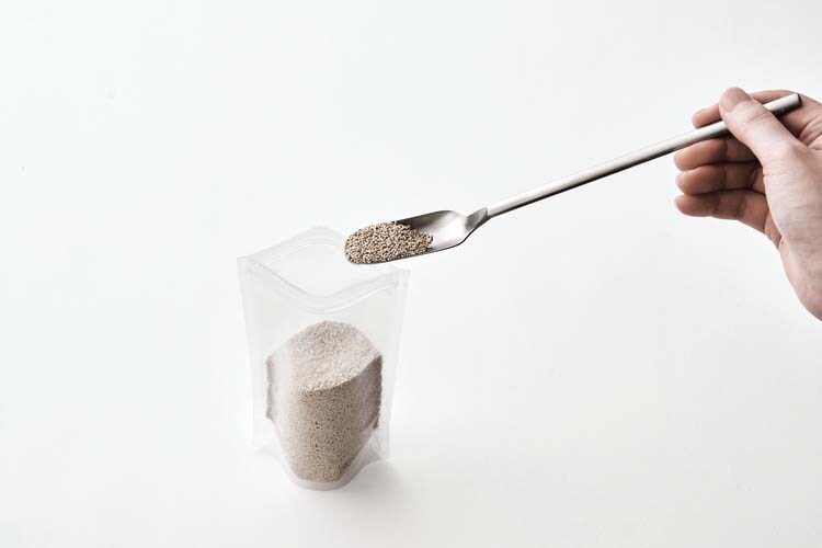 ●粉物の袋や瓶の口に引っかからずに取り出しやすい、長めの柄と、細くて深い形状です。