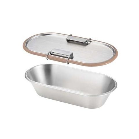 | サイズ:全幅113mm×全長213mm×高さ58mm 重量:290g 容量:600ml 材質:本体・蓋・金具/18-8ステンレス、パッキン/シリコーンゴム(耐熱温度230度) 食洗器対応 |