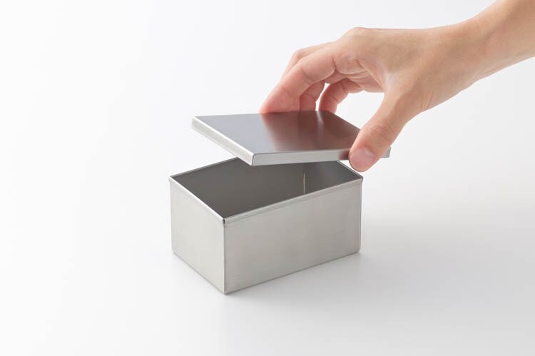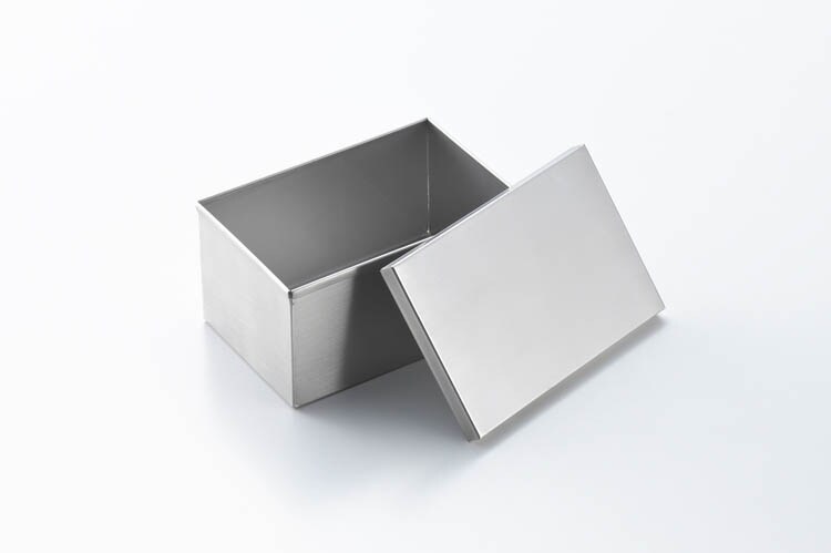 ●丈夫でサビにくいステンレス製角型缶。