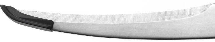 ●カーブ刃で食材の下に入りやすく、プレート上でも切りやすい。