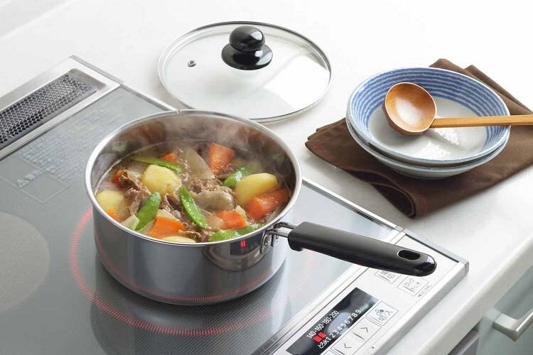 | ・サイズ(約):全長34.3*外径19.4(内径18)*高21.1cm (蒸し器セット時)・深さ8.5cm、蒸し器/全幅26.8*外径19.4*高9cm・深さ8.5cm、満水容量:2.2L ・本体重量(約):鍋/770g、蒸し器/410g ・素材・材質:下鍋/18-0ステンレス (底厚/0.6mm)、蒸し器/18-0ステンレス、ハンドル・ツマミ/フェノール樹脂、蓋/全面物理強化ガラス ・IH対応 |