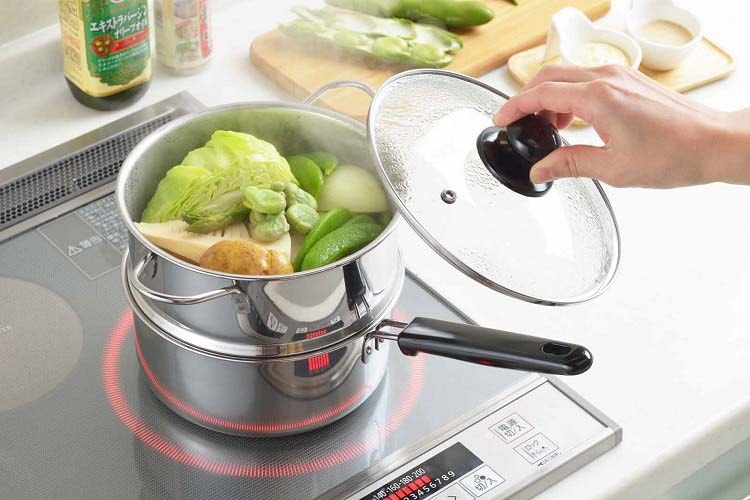 ●丈夫でさびにくいステンレス製の二段蒸し器。