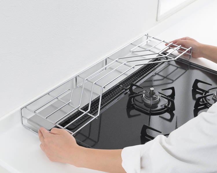 | サイズ(約):ラック/幅64×奥行20.2×高さ6cm、排気口カバー/幅36.5×奥行8×高さ1cm 本体重量(約):ラック/825g、排気口カバー/240g 素材・材質:ラック/スチール(クロムメッキ)、排気口カバー/18-0ステンレス、クッションゴム/シリコーンゴム 適応サイズ:幅62.7cm以内、コンロの高さ2.4cm以下の排気口に対応 ※グリル使用時は排気口を塞がないように必ず排気口カバーをスライドさせてください。また、ラック上のものを移動させてください。 |