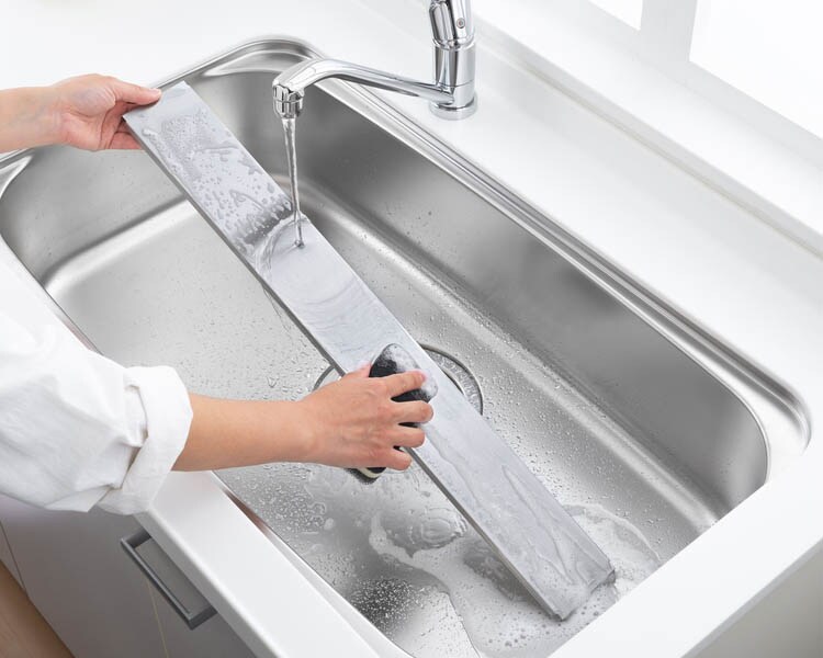 ●スライドさせて位置を調整することで、排気口を油ハネや料理物の飛び散りからガードできる。