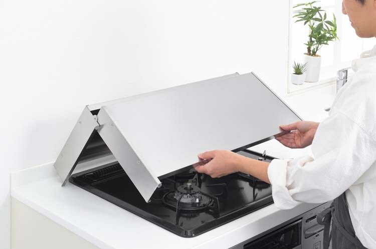 ●折りたたむと、調理中の油ハネから壁をガードする油ハネガードに早変わり。