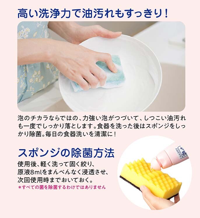 ・泡のチカラならではの高い泡洗浄力で、油汚れをしっかり落とします。油汚れを分解する力強い泡が持続します。