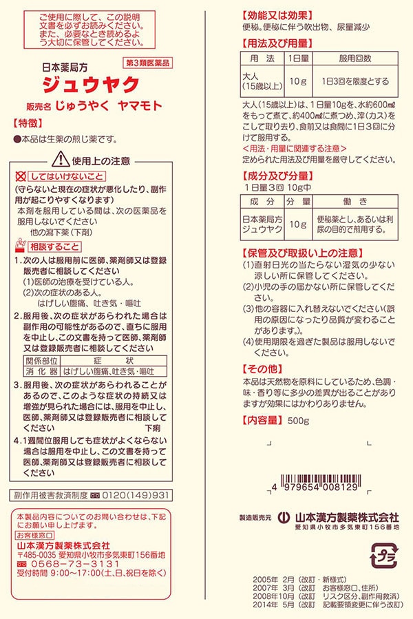 【第3類医薬品】山本漢方 日本薬局方 ジュウヤク (500g)