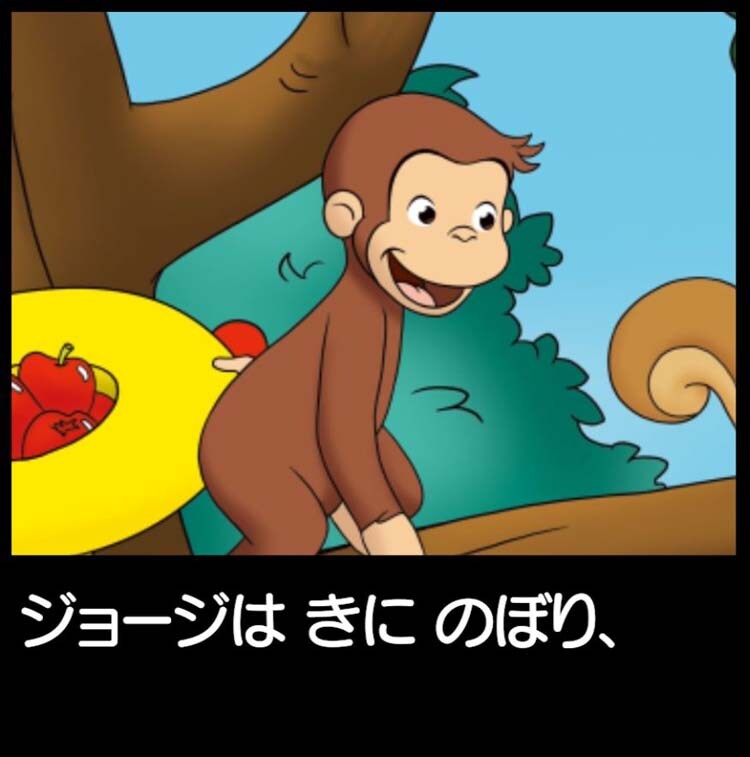 ●好奇心と探究心を育む「おさるのジョージ」の「おはなし」が20コンテンツ(10コンテンツ×日本語・英語2言語対応)つきで
